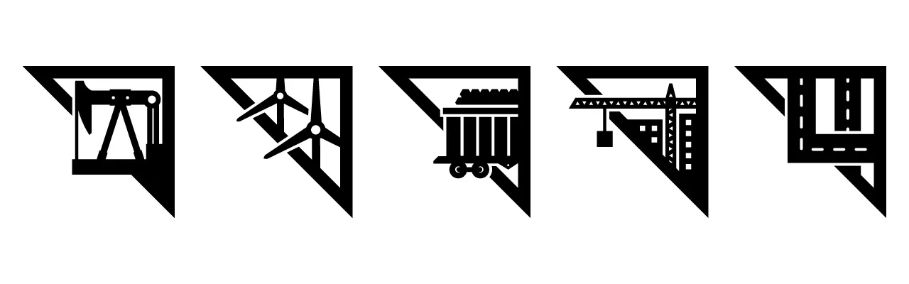 The logo and icons above were cut out of aluminum to give them weight and prominence in the exhibit.